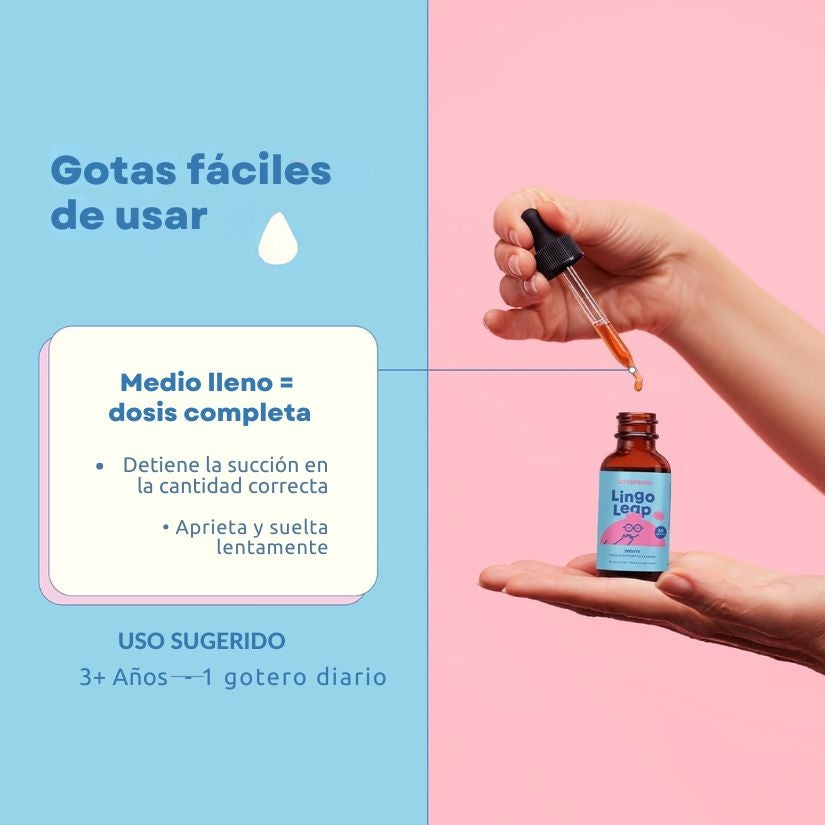 Un solo gotero al día puede ser el complemento ideal para terapias de lenguaje o estimulación temprana.