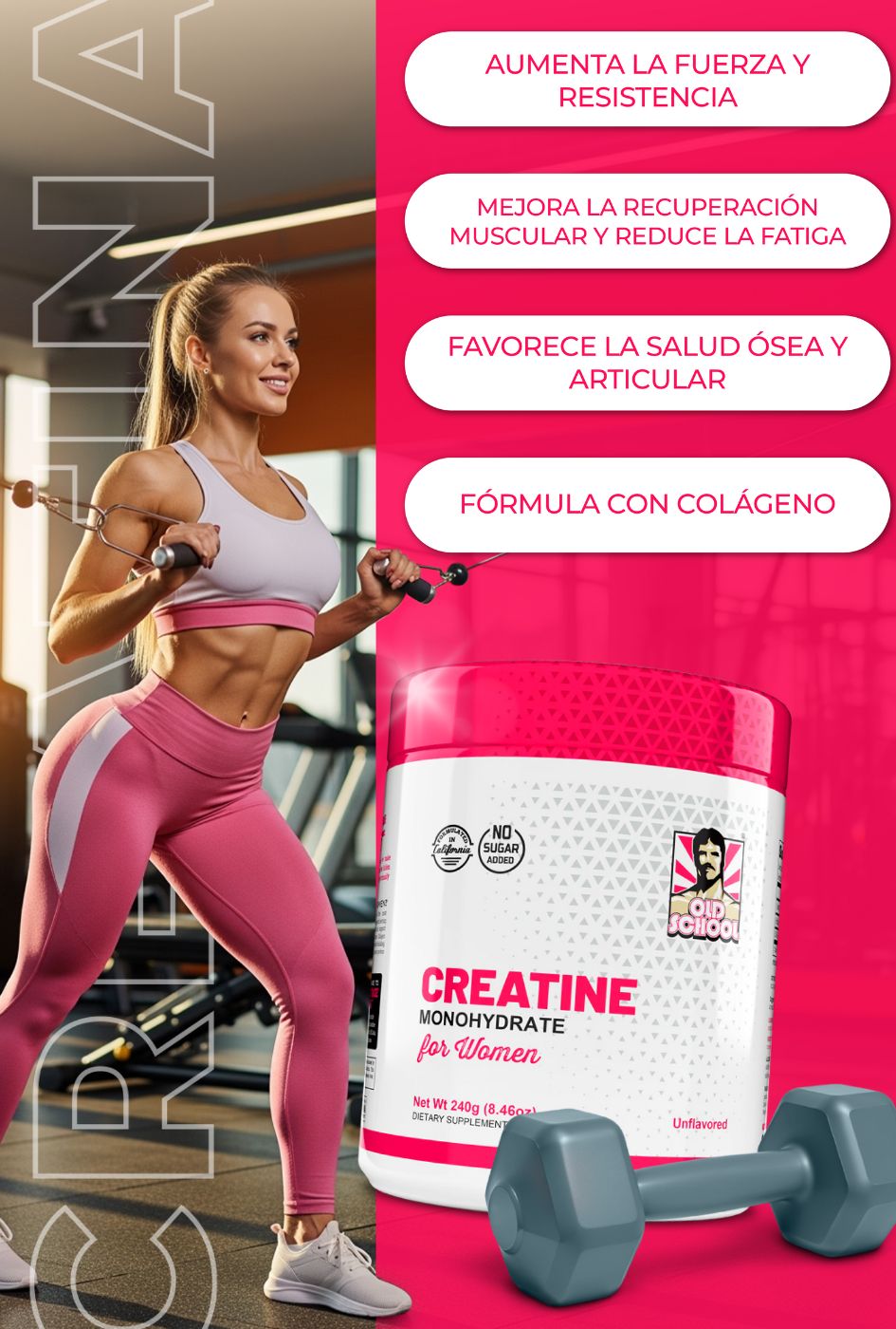 ¿Sueñas con un cuerpo fuerte, curvilíneo y glúteos firmes? Nuestra fórmula única combina 5000 mg de creatina pura + 2000 mg de colágeno + BCAA 2:1:1 para potenciar tu crecimiento muscular femenino.