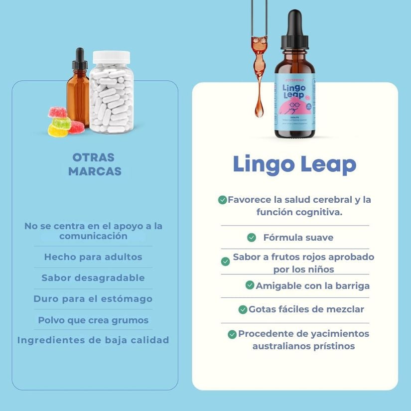 JoySpring LingoLeap combina zeolita activada, Vitamina B12 metilada y Vitamina D3 para apoyar el desarrollo del lenguaje, la comunicación verbal y el bienestar neurocognitivo.