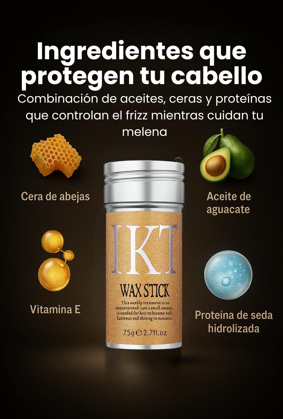 Compacta, práctica y lista para usar en cualquier momento. Su formato tipo “stick” te permite retocar tu peinado estés donde estés — en la oficina, el gimnasio o antes de una cita. ¡No más sprays voluminosos ni ceras líquidas desordenadas!